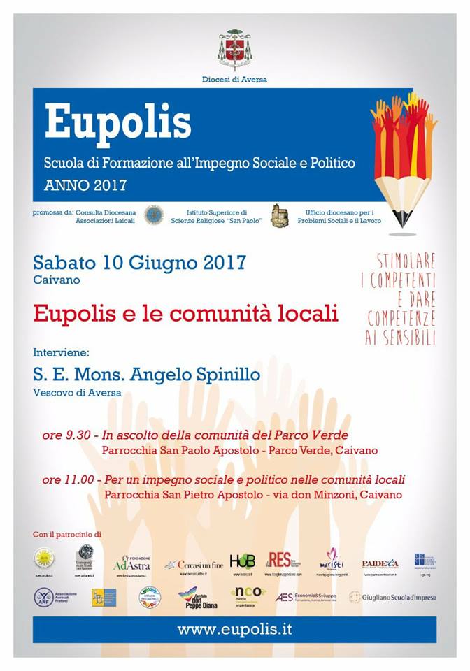 L’evento Eupolis del 10 giugno costituisce un momento di analisi e programmazione dell’impegno sociale e politico della Chiesa diocesana rispetto alle comunità locali. In compagnia del Vescovo di Aversa Mons. Angelo Spinillo, partendo dall’ascolto dei bisogni e delle prospettive delle comunità locali, e facendo tesoro dell’esperienza fin qui condotta dall’associazione, si intende proporre un confronto sul tema dell’impegno socio-politico delle comunità ecclesiali della nostra diocesi. Quali le priorità da affrontare? Con quali strumenti? Verso quali obiettivi di forma-azione? Le narrazioni dei partecipanti contribuiranno a tracciare un possibile cammino futuro.