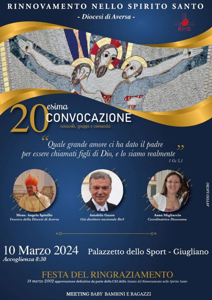 Domenica 10 Marzo tutti i cenacoli, gruppi e comunità del Rinnovamento nello Spirito Santo della diocesi di Aversa saranno radunati presso il Palazzetto dello sport di Giugliano in Campania.