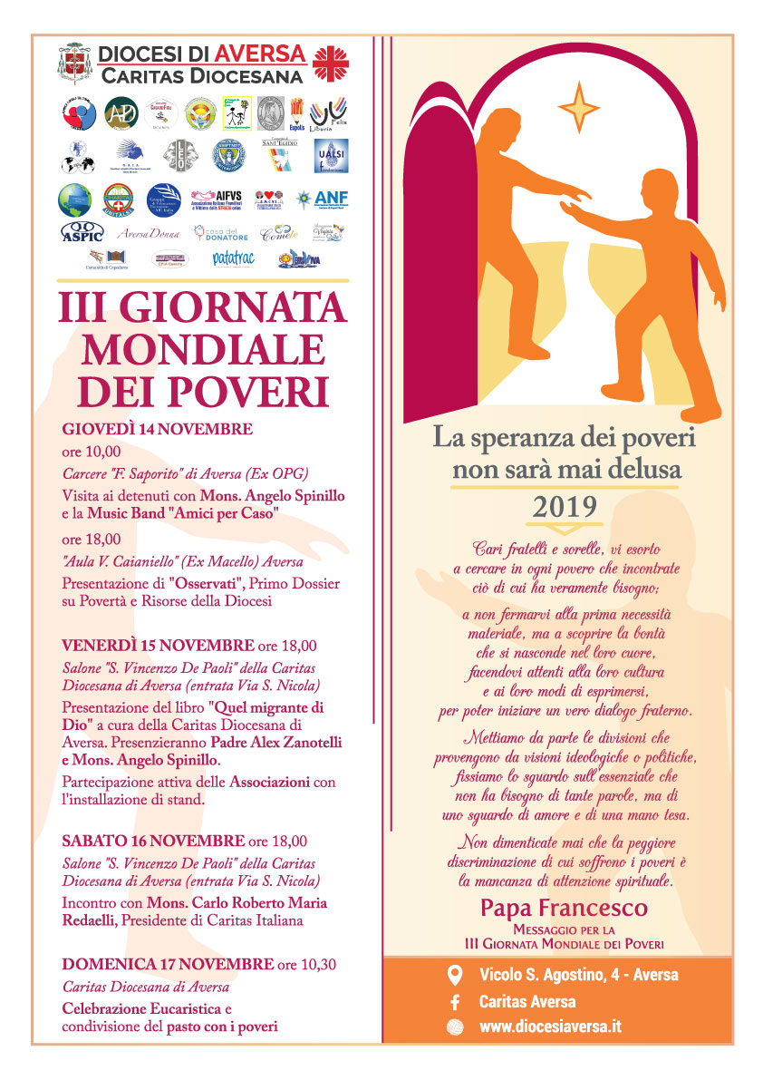 La III Giornata Mondiale dei Poveri è ormai alle porte: la diocesi di Aversa si prepara a vivere in pienezza un appuntamento che rappresenta anche uno dei momenti più intensi dell’intero anno pastorale. “Riannodiamo il filo riprendendo in mano il senso della giornata vissuta lo scorso anno, che traeva spunto dal grido dei poveri – un grido d’aiuto che partiva dal basso – rivolto verso l’alto”, spiega don Carmine Schiavone, direttore della Caritas diocesana. “Quest’anno il Papa ci invita a riflettere sullo splendido passaggio del Salmo 9, ‘La speranza dei poveri non sarà mai delusa’, che da anche il titolo alla giornata: il grido d’aiuto non resta inascoltato, ma dall’alto il Signore risponde restituendo ai poveri quella speranza che si rischia di smarrire dinanzi alle ingiustizie, agli stenti e alle sofferenze della vita”.