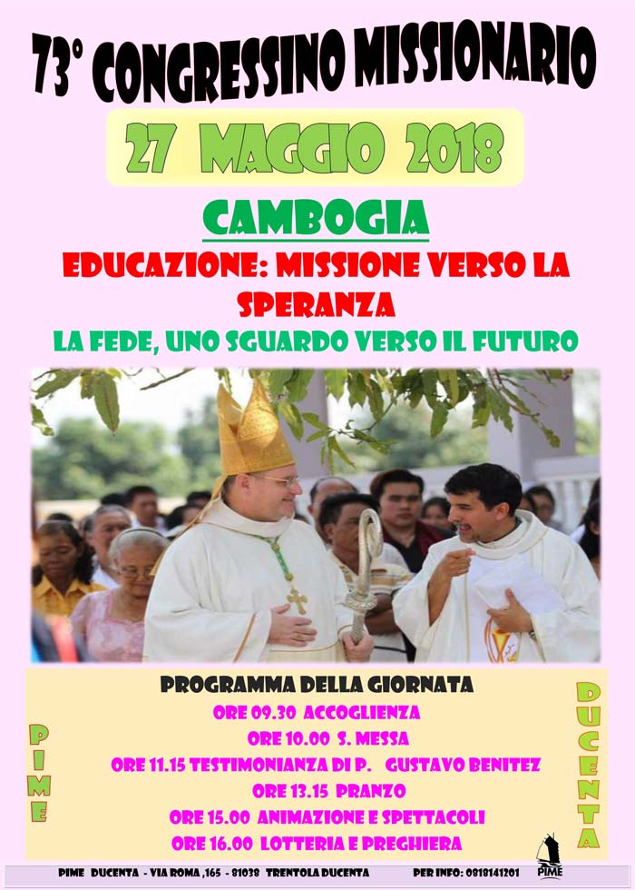 Altre news, eventi, news, News Religiosi 17 Maggio 2018 Comment 27 Maggio, PIME: Congressino Missionario Ecco il programma del 73° Congressino Missionario del PIME, in programma a Trentola Ducenta il 27 maggio 2018: CondividiFacebookTwitteremailLinkedin Pime-2018