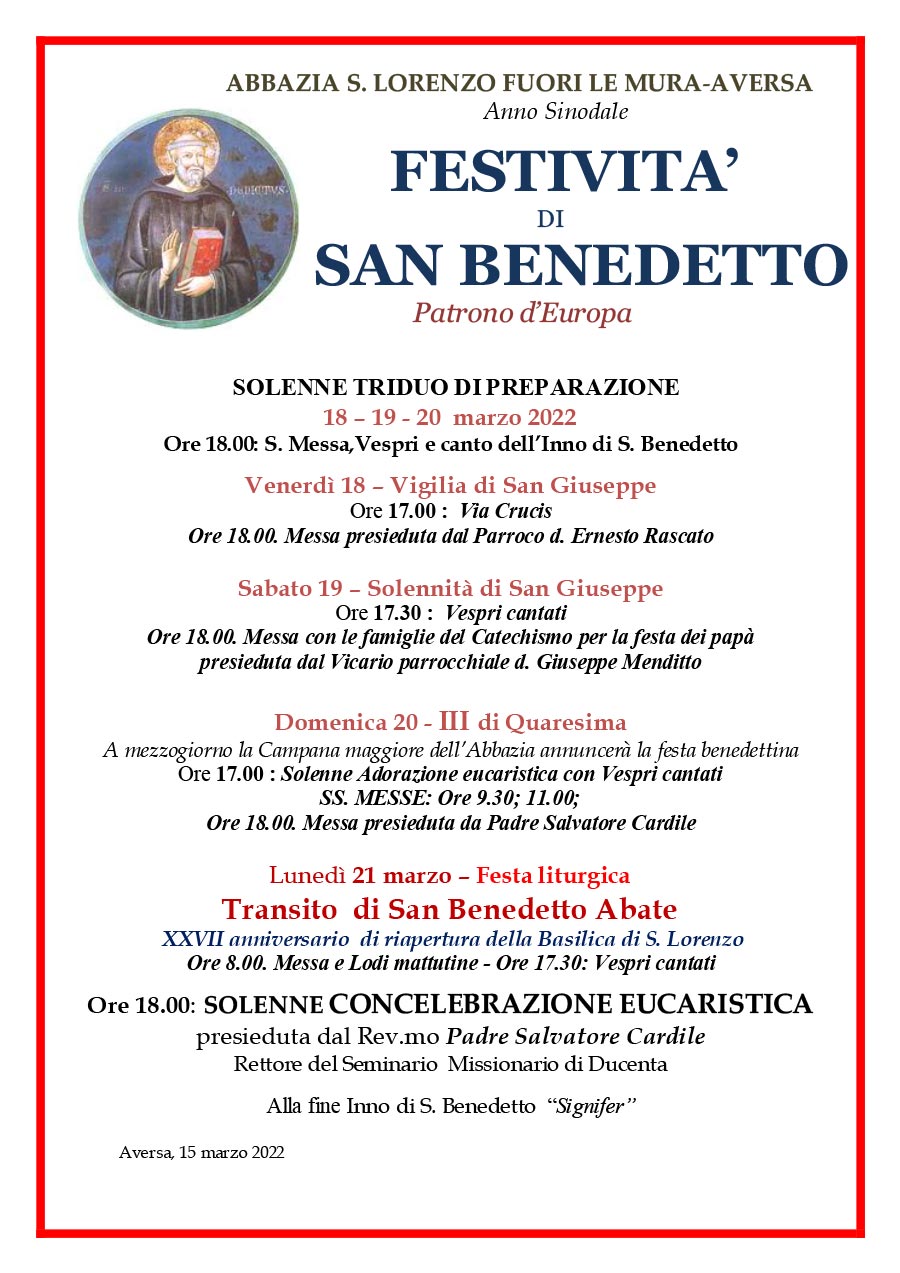 Abbazia S. Lorenzo, Aversa: Festa di San Benedetto 2022, il Programma