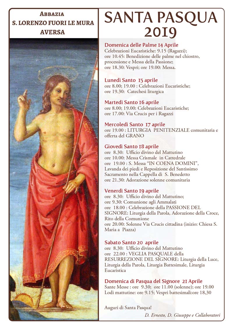 news, news parrocchie 13 Aprile 2019 admindiocesi Abbazia S. Lorenzo, Aversa: Programma Santa Pasqua 2019 CondividiFacebookTwitteremailLinkedin