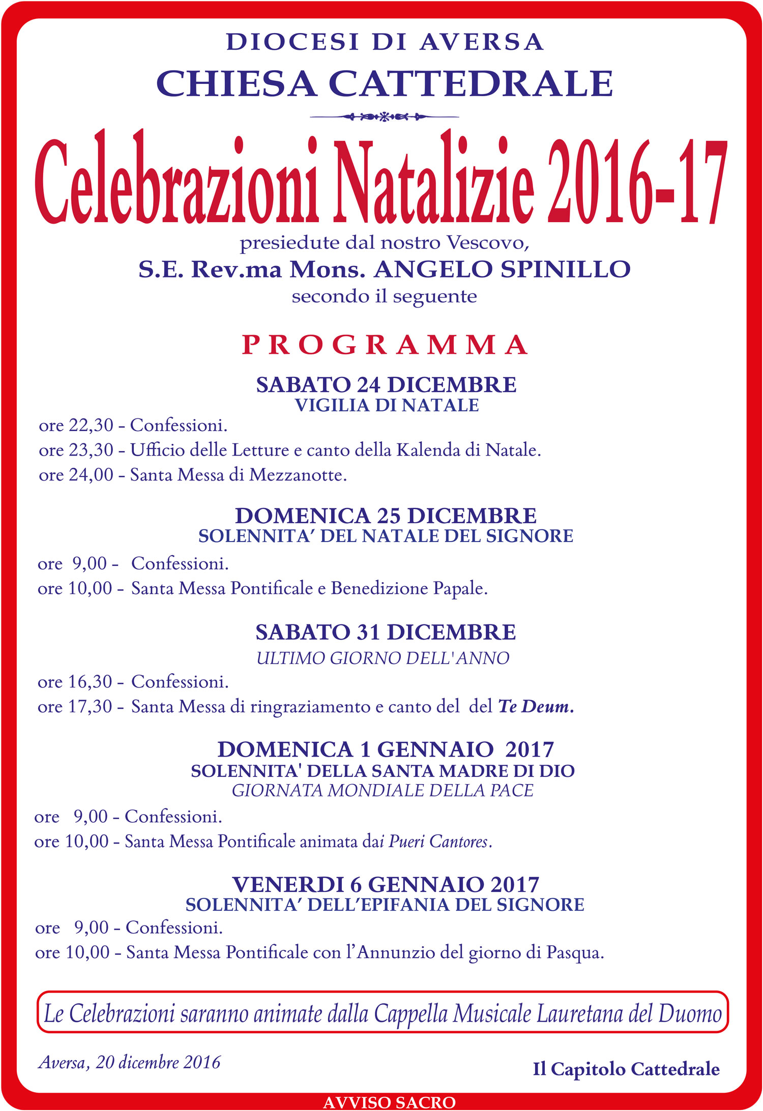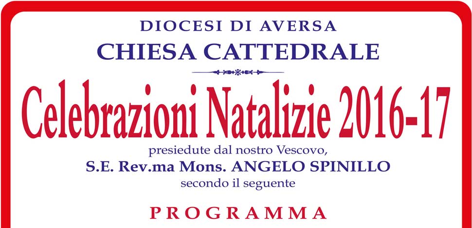 Ecco le Celebrazioni Natalizie presiedute dal nostro Vescovo, S.E. Rev.ma Mons. ANGELO SPINILLO secondo il seguente programma: