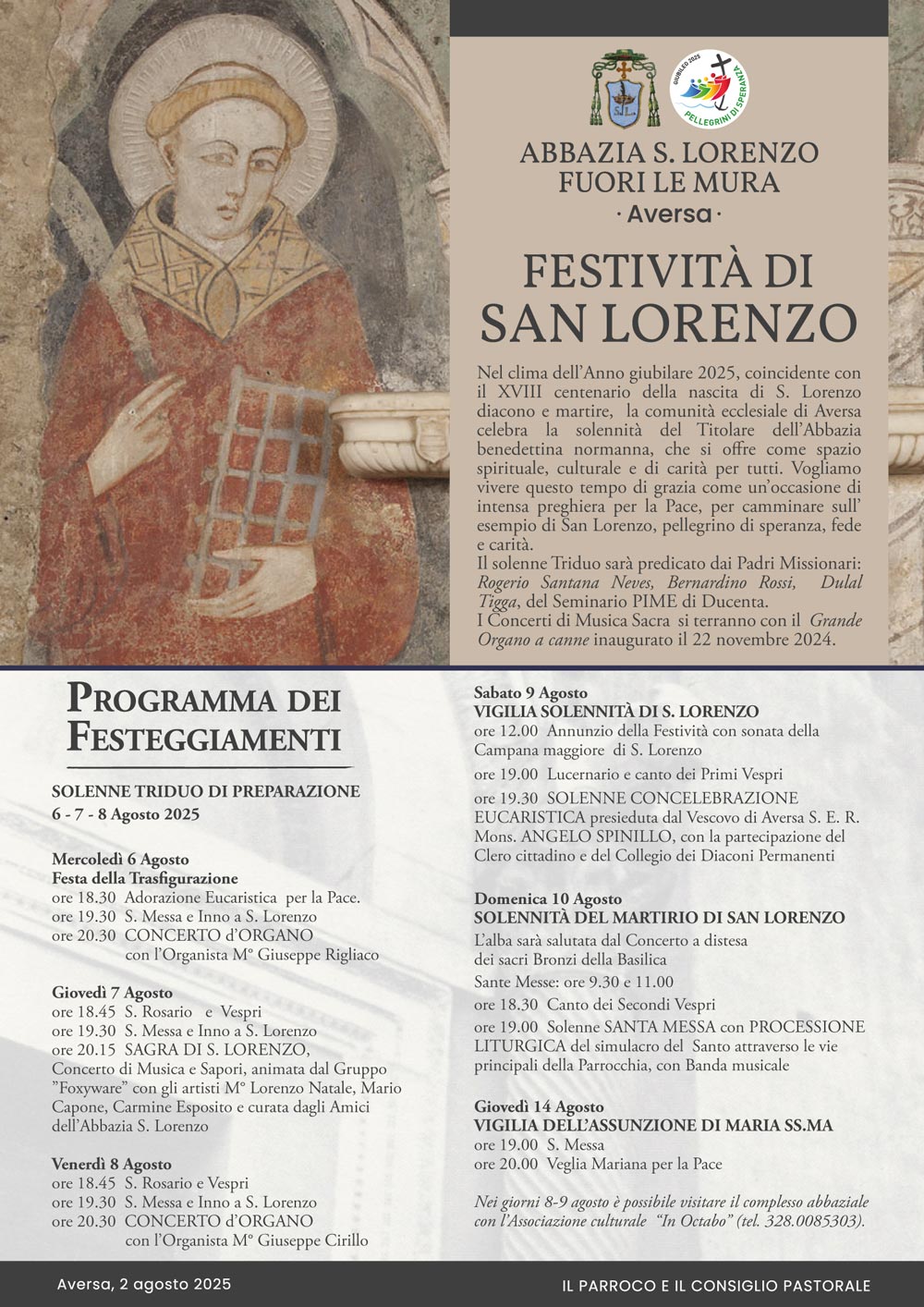 news, news parrocchie 4 Agosto 2025 admindiocesi Aversa, Festività di San Lorenzo 2025: il Programma CondividiFacebookTwitteremailLinkedin San Lorenzo 2025 locandina San-Lorenzo-1