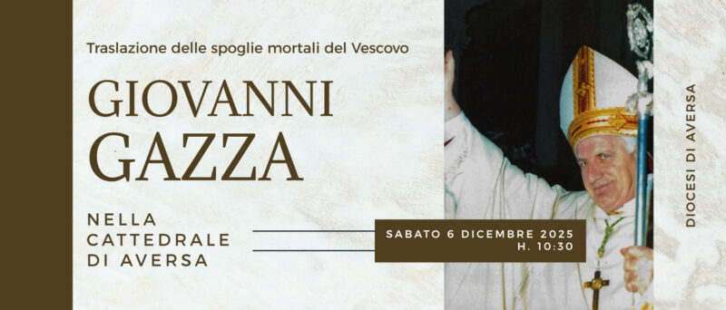 Diocesi di Aversa Traslazione delle spoglie mortali del Vescovo GIOVANNI GAZZA nella Cattedrale di Aversa Sabato 6 Dicembre 2025 – ore 10.30 Concelebrazione Eucaristica presieduta dal nostro vescovo Mons. Angelo Spinillo con il Capitolo della Cattedrale e il Presbiterio diocesano Testimonianze commemorative Cardinale Crescenzio Sepe, Arcivescovo Emerito di Napoli P. Fernando Garcia Rodriguez, Superiore Generale dei Missionari Saveriani Mons. Natale Paganelli Superiore Regionale Italia Benedizione … Continua a leggere Mons. Giovanni Gazza: il 6 Dicembre 2025, Traslazione spoglie mortali in Cattedrale
