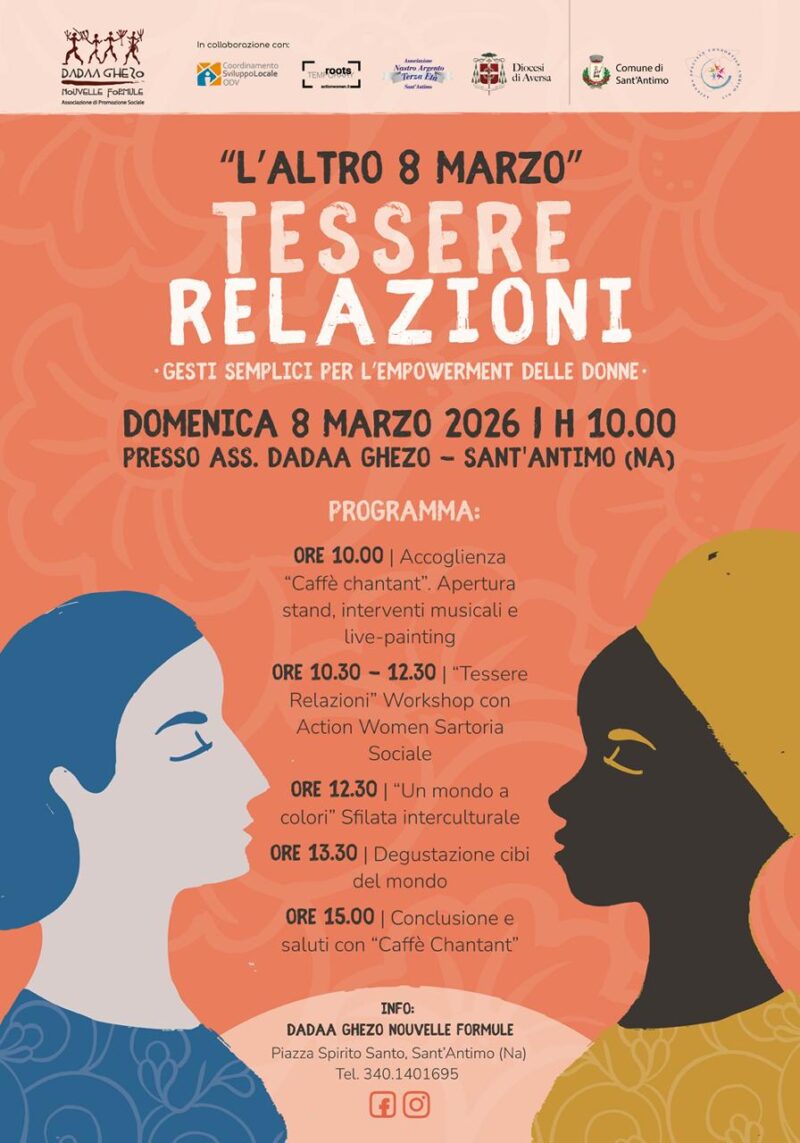 Offrire un’occasione per conoscersi, creare legami e scoprirsi simili nella diversità attraverso il gesto semplice del lavoro sartoriale condiviso. Una pratica primordiale e domestica che diventa mestiere e riscatto per le donne dell’ass. Action Women. Un workshop da loro guidato e rivolto alle donne del territorio sarà il fulcro dell’evento organizzato dall’ass. Dadaa Ghezo Nouvelle Formule per celebrare la Giornata Internazionale della Donna. “L’altro 8 … Continua a leggere A Sant’Antimo, “L’altro 8 Marzo. Tessere relazioni”