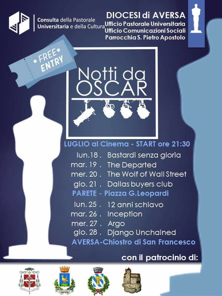 Parte lunedì 18 luglio “Notti da Oscar”, evento organizzato dalla Consulta della Pastorale Universitaria e della Cultura, dall’Ufficio Pastorale Universitaria, dall’Ufficio Comunicazioni Sociali e dalla Parrocchia S. Pietro Apostolo.