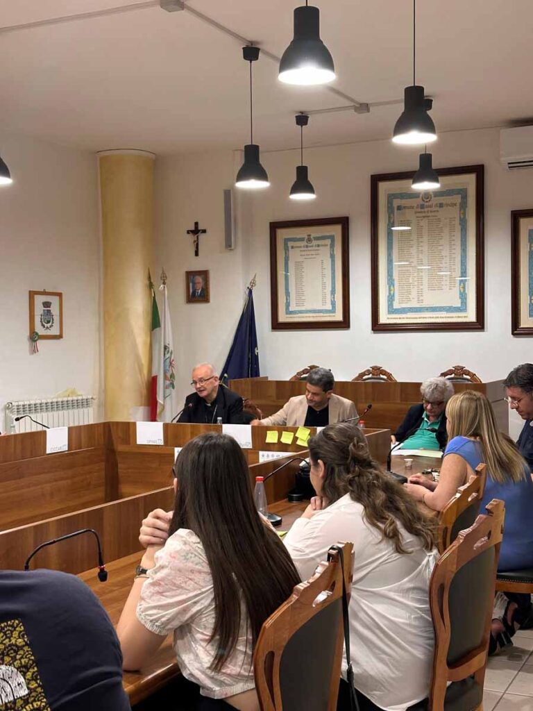 Giovedì 19 giugno si è concluso a Casal di Principe il ciclo di incontri di formazione socio-politica dedicato all’Economia Civile e ai temi della Giustizia e della Pace. L’ultimo appuntamento, dal titolo “La Partecipazione. Pace e responsabilità degli enti locali”, si è svolto nella Sala Consiliare “Don Peppe Diana” e ha visto confrontarsi sul tema della Pace e sul ruolo specifico degli Enti Locali il vescovo Angelo Spinillo e l’avvocato Pasquale Fedele.