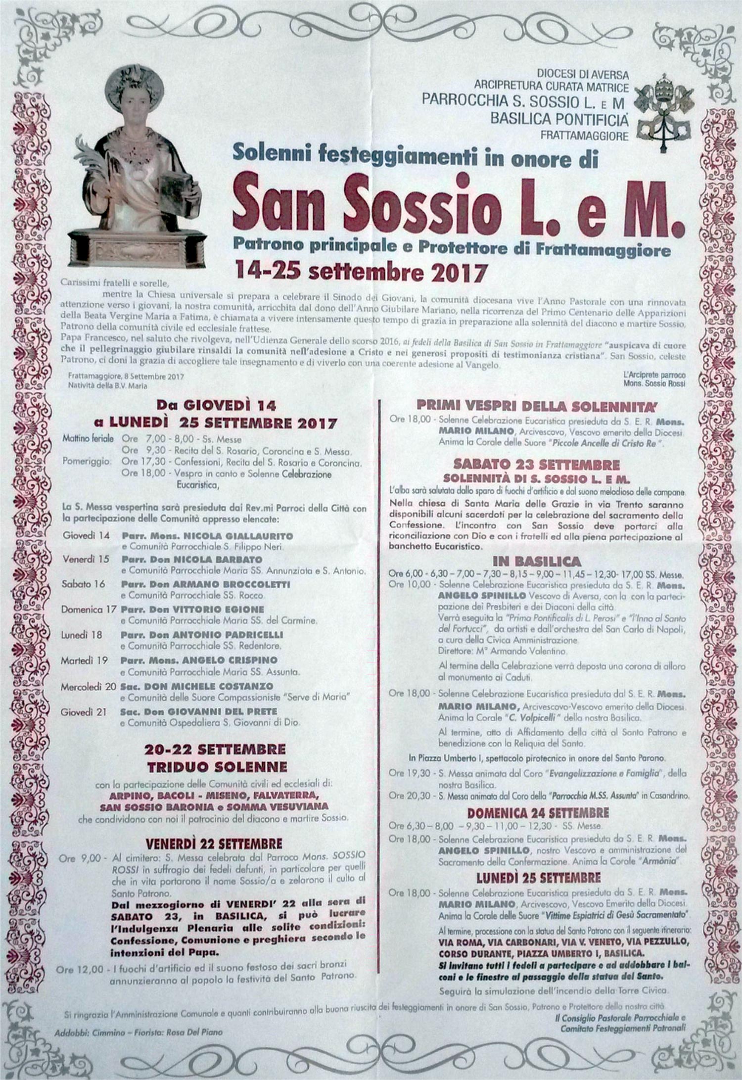 news parrocchie 18 Settembre 2017 Comment Festa di San Sossio (Frattamaggiore): il programma Ecco il programma dei solenni festeggiamenti in onore di San Sossio L. e M., patrono di Frattamaggiore: CondividiFacebookTwitteremailLinkedin FestaSanSossio2017