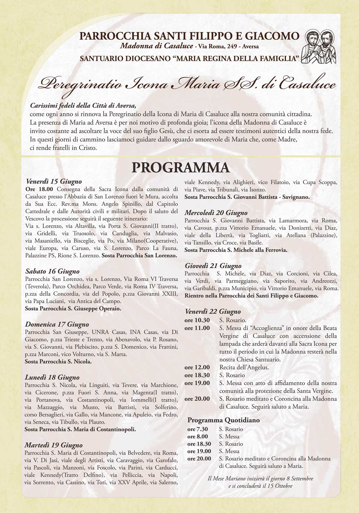 news, news parrocchie 29 Maggio 2018 Comment Filippo e Giacomo: Peregrinatio Icona Madonna di Casaluce, il Programma CondividiFacebookTwitteremailLinkedin Peregrinatio-Casaluce-2018