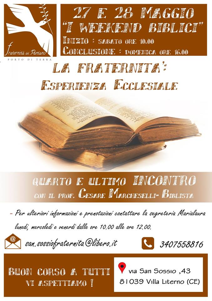 Fraternità Pantano, 28-29 Maggio Week-end biblico