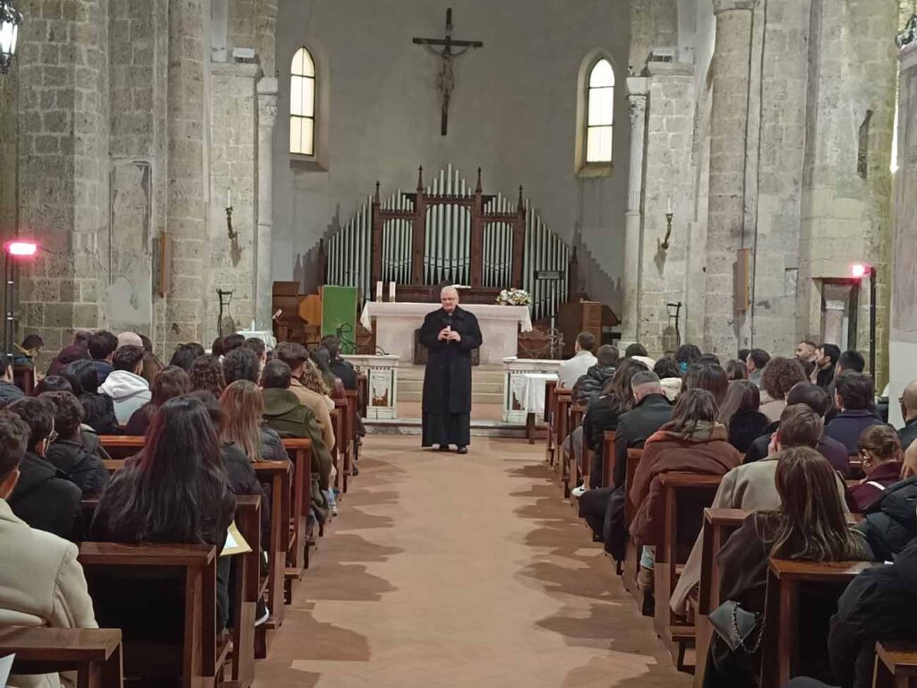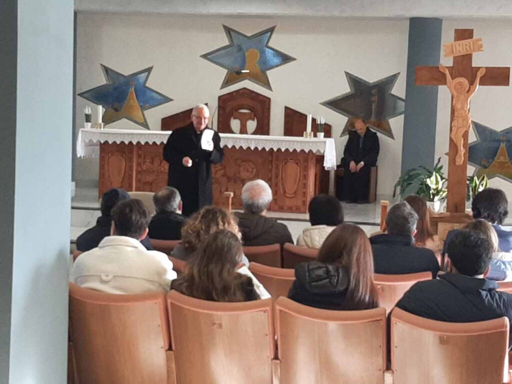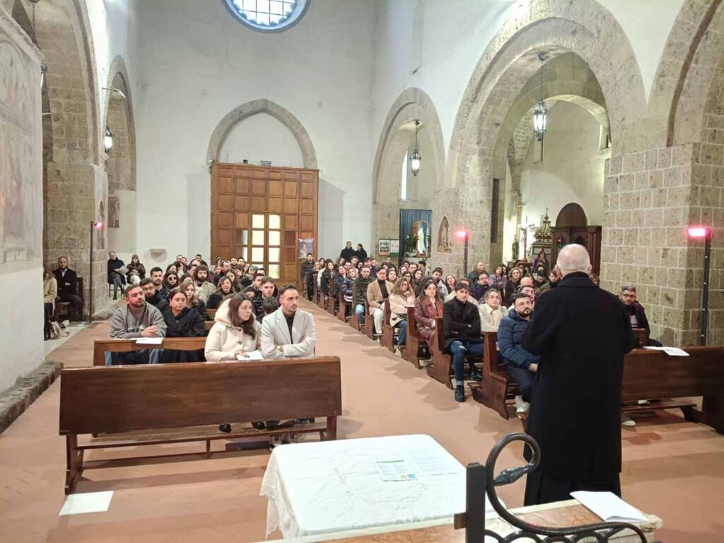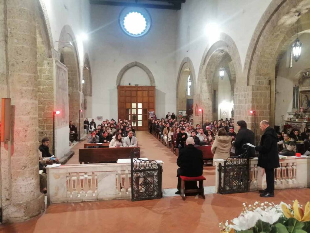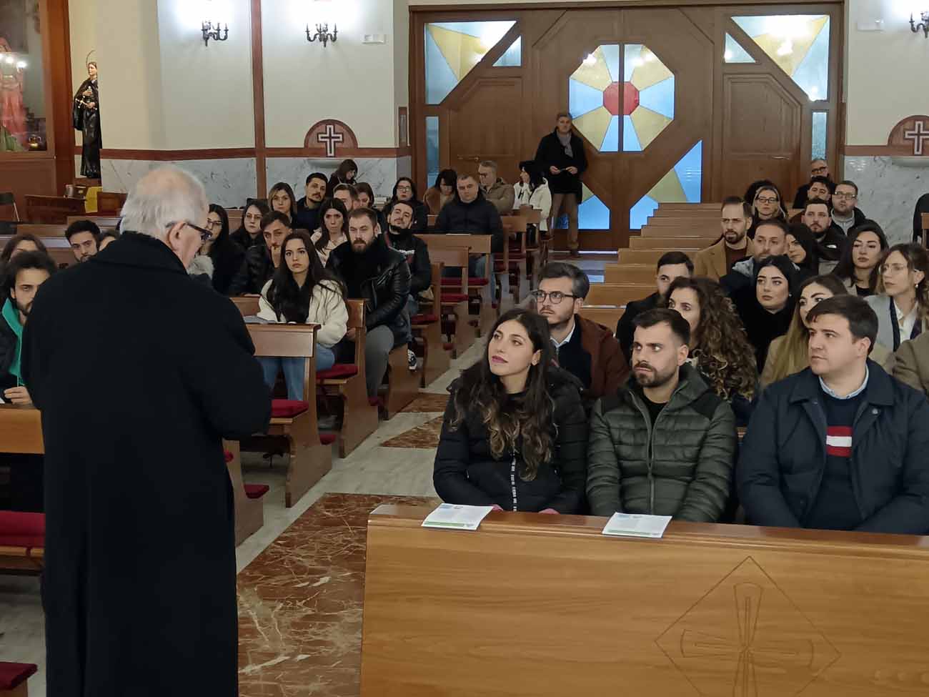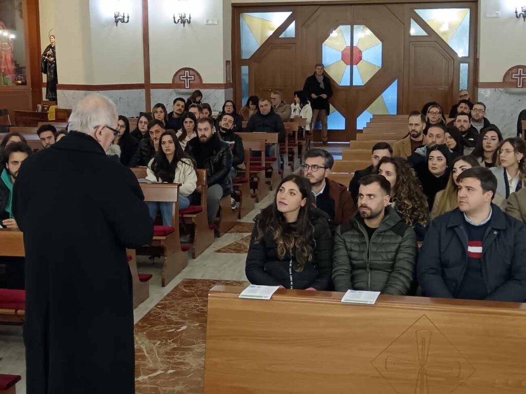 Mons. Spinillo ha dialogato in maniera appassionata coi giovani ed ha parlato loro del Matrimonio come Sacramento che li inserisce pienamente nel cammino della Chiesa; ha sottolineato come la libertà con cui celebreranno il Matrimonio sia una condizione essenziale per garantire il rimanere insieme per sempre, una libertà ad immagine dell’amore di Dio che è libero da ogni aspettativa e da ogni condizione, ed è gratuito; ha invitato i giovani a tenere a mente che il Matrimonio sacramentale che celebreranno è una vera e propria alleanza ad immagine di quella stabilita dal Signore col suo popolo quando si è sacrificato per la sua salvezza; ha, infine, condiviso coi giovani alcuni spunti di riflessione offerti dalla sua esperienza pastorale, come sacerdote, parroco e vescovo.