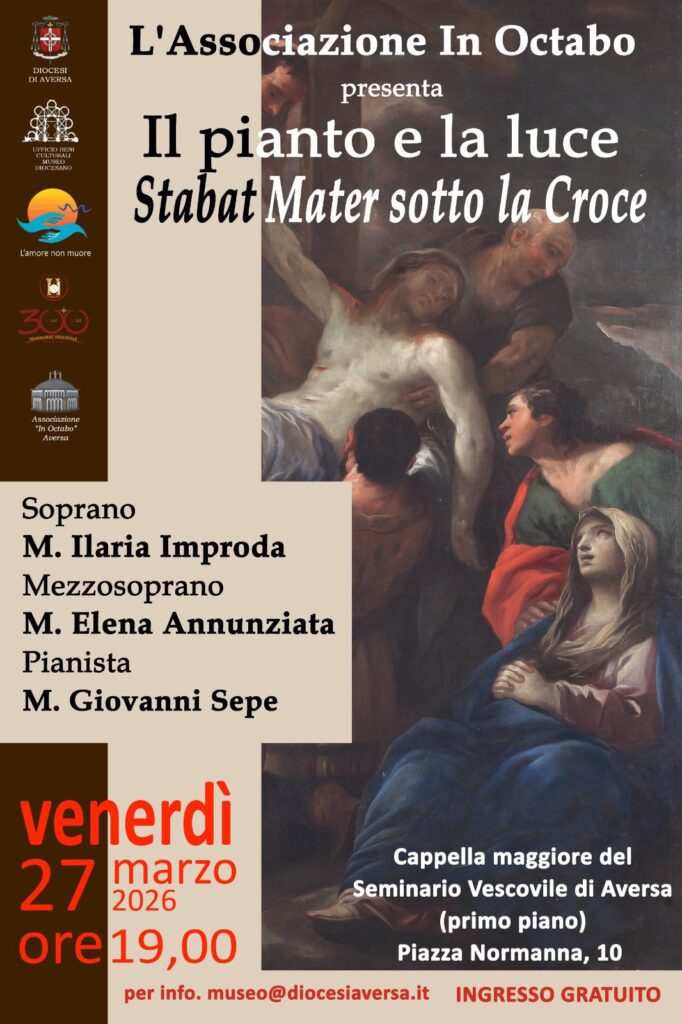 Nel pieno del cammino quaresimale, venerdì 27 marzo 2026 alle ore 19:00, la Cappella maggiore del Seminario Vescovile di Aversa ospiterà un intenso momento di preghiera in musica: “Il pianto e la luce – Stabat Mater sotto la Croce”.