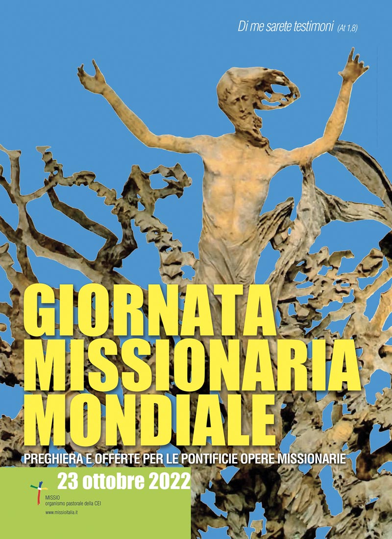 La Giornata Missionaria Mondiale 2022 trova il suo principale riferimento tematico nel messaggio di Papa Francesco, pubblicato il 6 gennaio scorso, che porta il titolo «Di me sarete testimoni» (At 1,8). Il Papa ci dice: «Come Cristo è il primo inviato, cioè missionario del Padre (cfr Gv 20,21) e, in quanto tale, è il suo “testimone fedele” (cfr Ap 1,5), così ogni cristiano è chiamato a essere missionario e testimone di Cristo. E la Chiesa, comunità dei discepoli di Cristo, non ha altra missione se non quella di evangelizzare il mondo, rendendo testimonianza a Cristo. L’identità della Chiesa è evangelizzare».