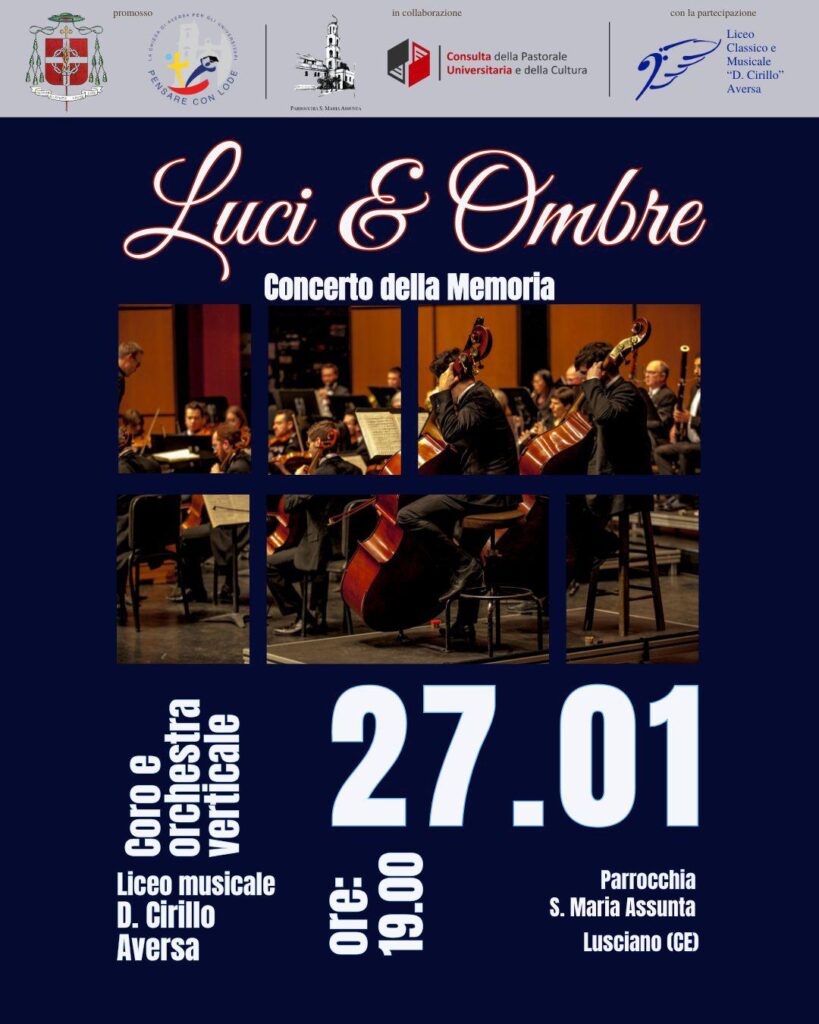 In occasione della Giornata della Memoria, la Consulta della Pastorale Universitaria e della Cultura, in collaborazione con la Parrocchia S. Maria Assunta di Lusciano e con la partecipazione del Liceo Classico e Musicale “D. Cirillo” di Aversa, invita la comunità al concerto dal titolo “Luci & Ombre”.