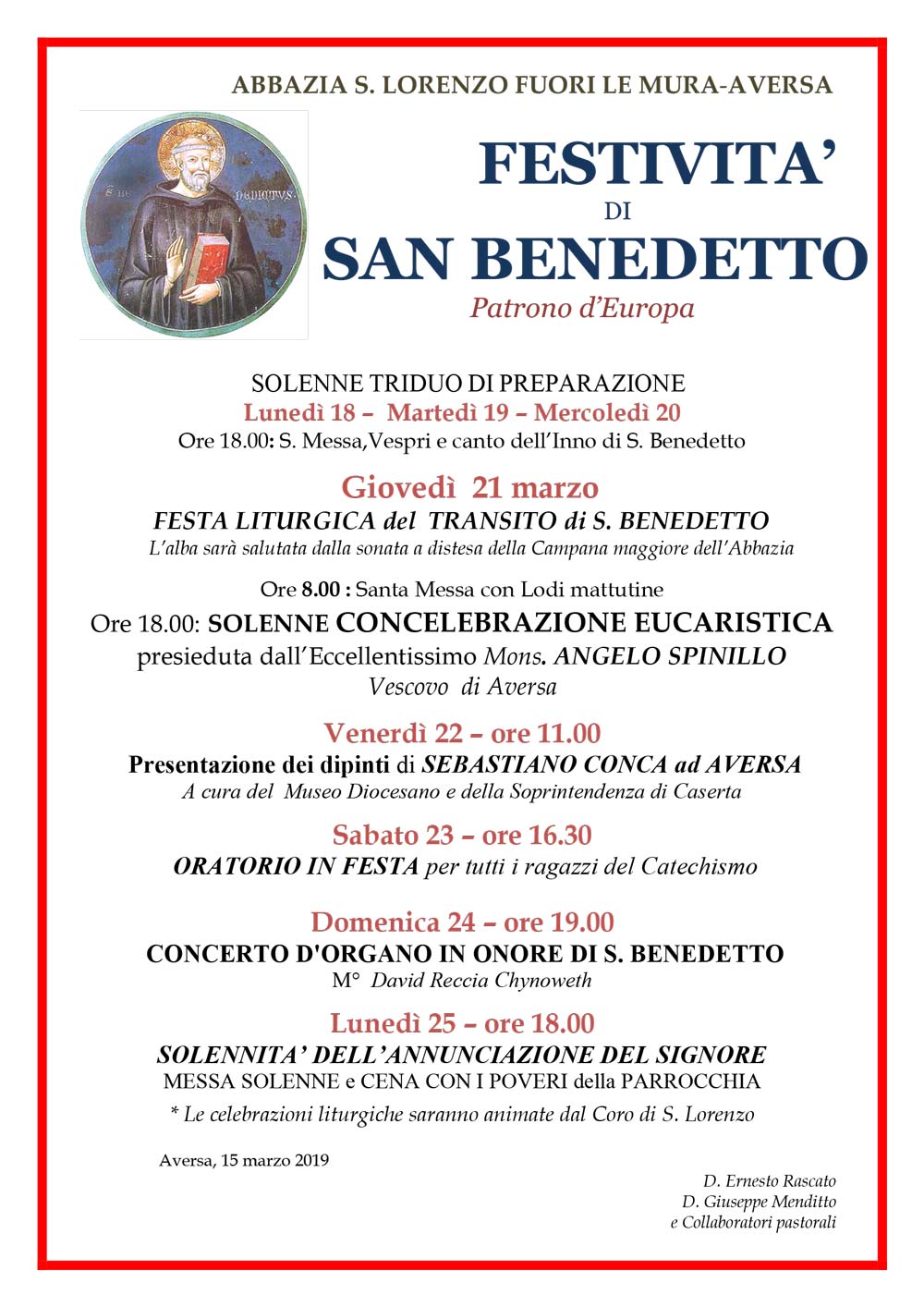 San Lorenzo (Aversa): Programma Festività di San Benedetto