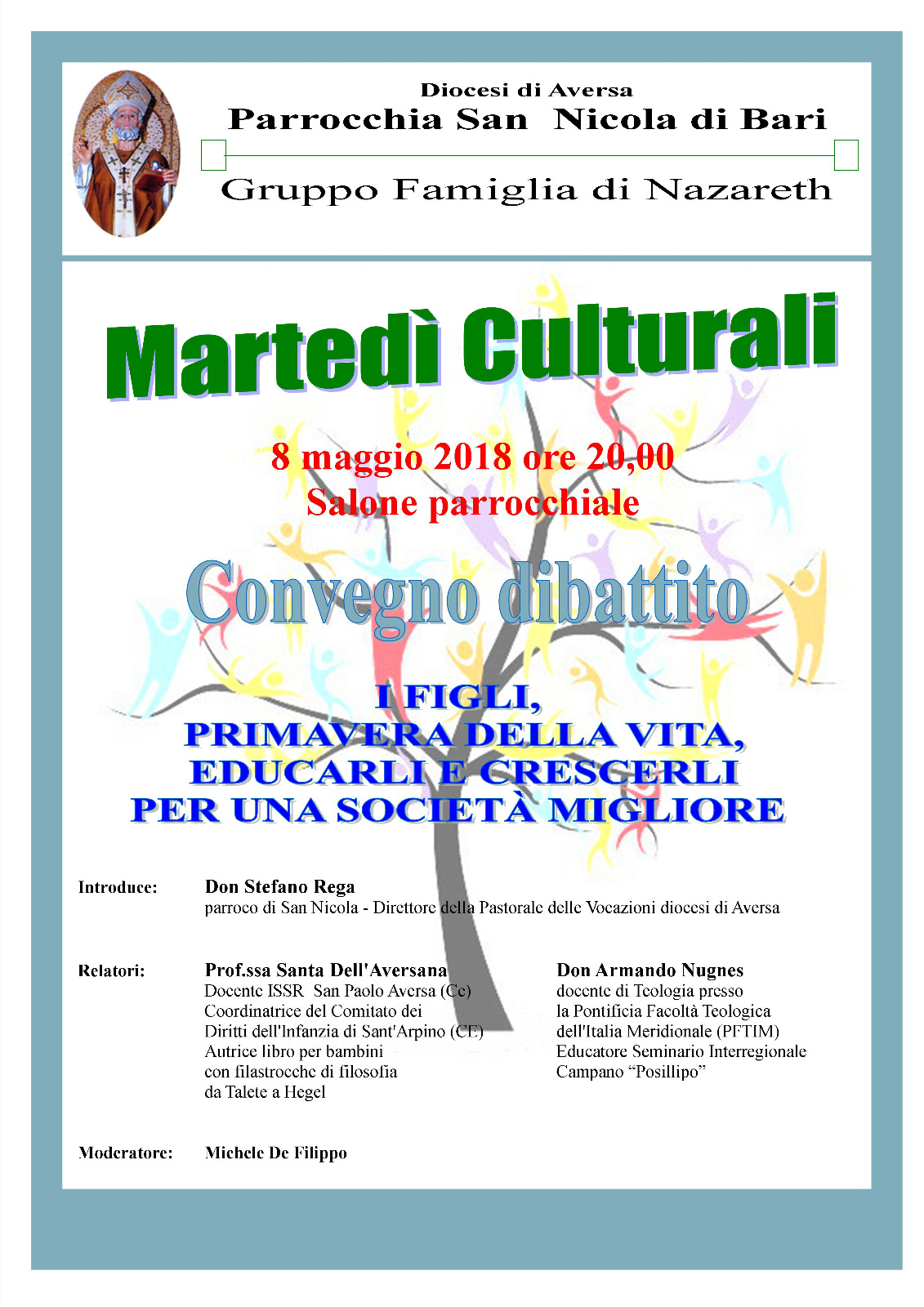 news, news parrocchie 4 Maggio 2018 Comment San Nicola (Giugliano): 8 maggio, martedì culturale CondividiFacebookTwitteremailLinkedin San Nicola Marrtedì culturali