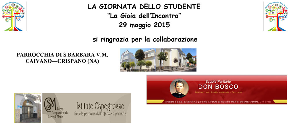 Venerdì 29 maggio, alla presenza di Mons. Spinillo, I Edizione dell’iniziativa L’evento, intitolato “La gioia dell’incontro”, è organizzato dal plesso scolastico Cilea – Mameli di Caivano anche con la collaborazione della Chiesa Santa Barbara.
