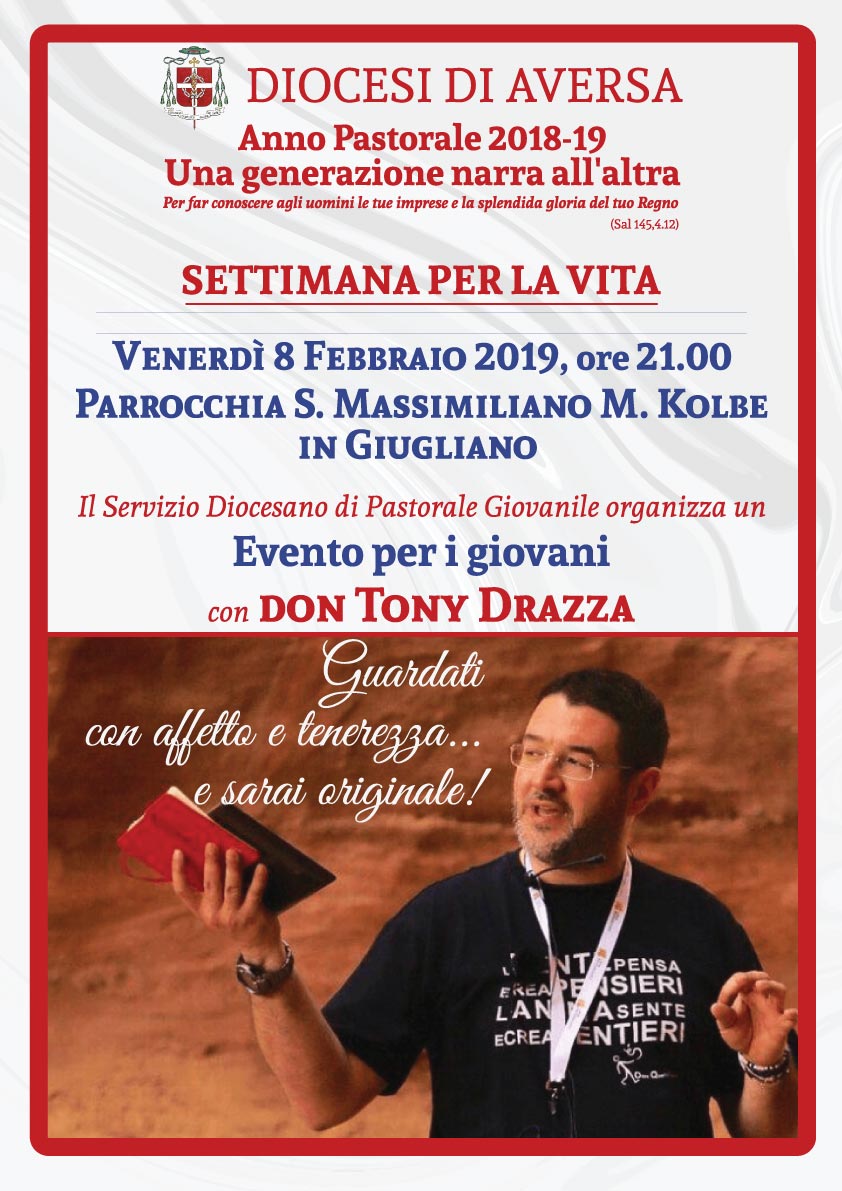 ore 21.00: Evento per giovani della Diocesi organizzato dalla Pastorale Giovanile diocesana con Tony Drazza, Parrocchia S. Massimiliano M. Kolbe – Giugliano
