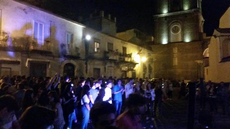 Grande presenza di giovani ed universitari che solitamente caratterizza i venerdì sera del seggio ad Aversa. In effetti la location non è stata un caso, CONPASUNI non ha solo organizzato una serata universitaria ma ha anche voluto intraprendere un esperienza di dialogo con gli spazi della città. Approfittando dello storico fondale della cattedrale e del palazzo episcopale e della suggestiva torre campanaria, illuminata la notte e da poco restaurata, ha provato a ri-identificare uno dei tanti “non luoghi” di Aversa dandogli almeno per una notte una nuova destinazione d’uso. La chiave di lettura di CONPASUNI rimane la stessa delle sue precedenti iniziative, come i Punti di Vista (in giro per chiese, palazzi e giardini a riscoprire l storia del territorio) o la Passio (in un insolito aperitivo che ha legato il sacro della lettura della passione al profano della location) anche “TUTTO in una NOTTE” cerca di dimostrare che Aversa non è solo movida per gli universitari ma anche luogo d’arte ed espressione artistica.