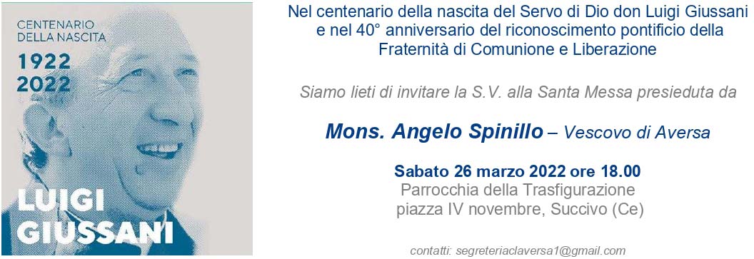 Senza categoria 21 Marzo 2022 admindiocesi Trasfigurazione, Succivo: Santa Messa per il centenario di don Giussani CondividiFacebookTwitteremailLinkedin succivo-giussani