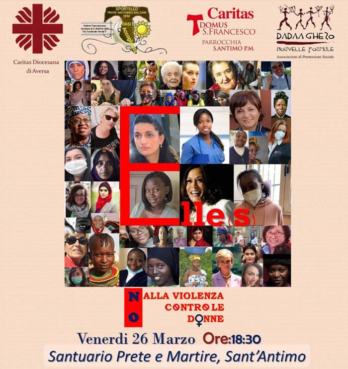 Sensibilizzare alle sempre attuali, dolorose problematiche degli atti di femminicidio: con questo intento la Caritas Diocesana di Aversa, l’Associazione “Dadaa Ghezo Nouvelle Formule”, il gruppo di donne Elle(s), l’Ordine Francescano dei Frati Minori di S.Antimo e la Caritas Domus S. Francesco della Parrocchia di S.Antimo hanno concepito e organizzato un’interessante iniziativa per il 26 marzo 2021. Venerdì prossimo infatti, alle ore 18.30, il Santuario S. Antimo Prete e Martire – in Sant’Antimo – ospiterà una singolare Via Crucis: protagoniste delle varie stazioni saranno esclusivamente le donne, ognuna con la propria storia di sopruso, sofferenza e salvezza. “La quattordicesima stazione contemplerà la testimonianza di Caterina, la donna di Frattamaggiore che ha vissuto la terribile esperienza di essere stata perseguitata dal suo ex marito”, informa Roger S. Adjicoude, responsabile dell’area Immigrazione della Caritas di Aversa.